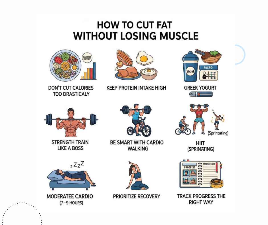 Strength training is essential for preserving muscle while in a calorie deficit. You won’t necessarily build new muscle while cutting, but you’ll maintain what you’ve got—and that’s the goal.
